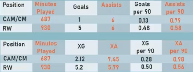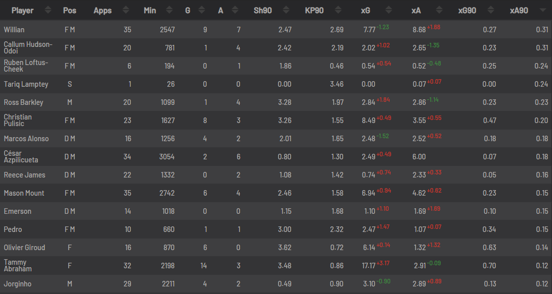 In theory, it would be easy for Ziyech to take over this position since both Willian and Pedro are tipped to leave the club this summer. For context, his xA for the season and per game sit at a brilliant 15.54 and 0.74, respectively, as compared to Willian’s 8.68 and 0.31.