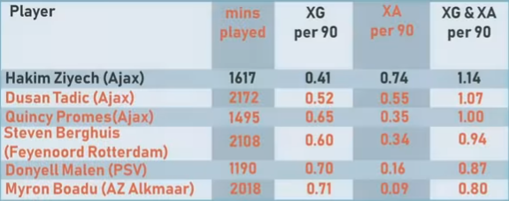 However, the 27-year-old does not stand in the top ten for expected goals per 90 this season in the Eredivisie, but none of the highest assist providers over the top five league match him for expected assists per 90. Not even Dusan Tadic, who has the most assists in the Dutch top-flight.