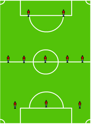 There are three central defenders, one of them playing as a sweeper behind the other two, who generally mark the two central strikers. Two wing-backs, who are none other than attacking full-backs, play higher up the pitch, in midfield. With no offensive player ahead of them, they are responsible for covering the entire length of the flank, contributing in attack and in defence. Naturally, they are the defining components of the formation, components which can make or break the system. Three midfielders form a triangle in the centre, with two strikers leading the line.