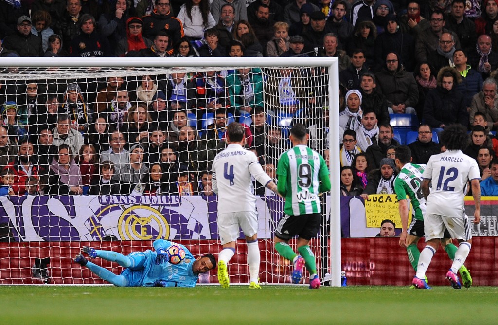 He did however, make amends for it later in the game by keeping out what could have been the equaliser for Betis in the 92nd minute. Riza Durmisi’s cross was met by Sanabria’s head in the middle of the box and Navas dived to his left to make a stunning save to keep Real in the lead.