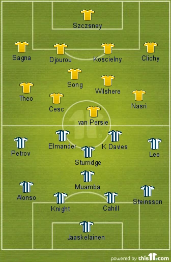 Probable Starting Line-Up: Szczsney, Sagna, Djourou, Koscielny, Clichy, Song, Wilshere, Nasri, Theo, Cesc, van Persie