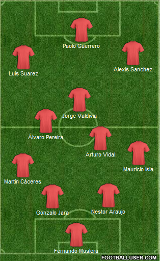Forwards: Alexis Sanchez (Chile), Luis Suarez (Uruguay), Paolo Guerrero (Peru)