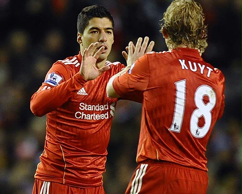 Luis Suarez, the Uruguayan who used mostly his hands for scoring goals during the previous World Cup, dribbled past a plethora of United defenders inside their half and set up Dirk Kuyt for a ‘Nistelrooy’ tap in. The move involved brilliant ball control and nifty footwork by the new Liverpool signing which has led to his legendary status amongst the Kops already! The previous two legends to wear that coveted Jersey ‘Seven’ was Kevin Keegan and the current Kop Manager Dalglish.