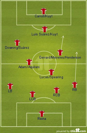 Forwards: Suárez, Kuyt, Cole, Rodríguez, N’Gog, Carroll, Downing