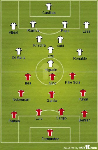Expected Starting XI (4-2-3-1) – Casillas; Albiol, Pepe, Ramos, Lass; Khedira, Xabi; Di Maria, Ozil, Ronaldo; Higuain
