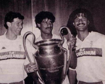 After a 1-1 draw at the Bernabeu, Los Blancos visited the citadel now known as San Siro. Ancelottiai??i??s superb goal from distance was the beginning of a horrible night for Madrid. The jubilant celebrations that followed Carloai??i??s goal were attended by not only all the players, but also almost the entire bench. Rijkaard and Gullit scored also before half-time, and after the game resumed, blows from Van Basten and Donadoni rained on whatever remained of the legendary Spaniards. Milan had finally arrived, and that too in some style.