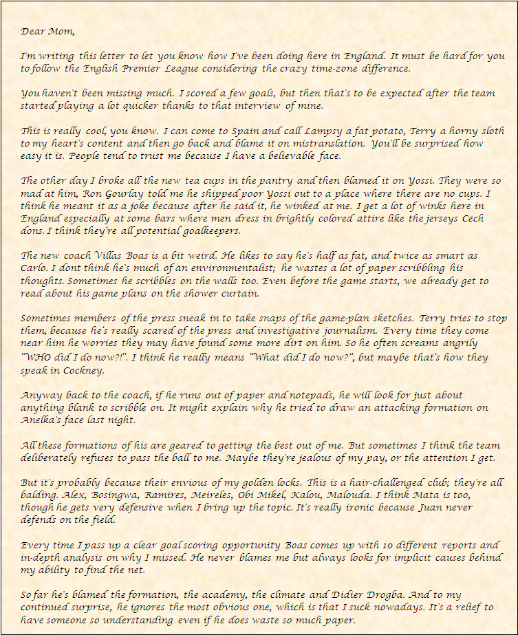 THT Travesty : Chelsea’s Forward Fernando Torres Writes Home