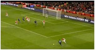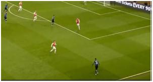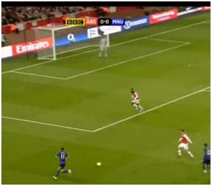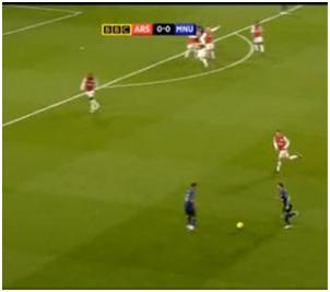 Screenshot one: It captures Arsenal completely out of shape, with Djourou standing nowhere close to the Right Back spot that he is assigned. Also, observe the three players marking one Manchester United man – Welbeck, rather than spreading around.