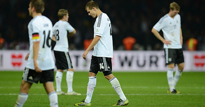 Heretofore, Germany did an Arsenal by giving away a four goal lead. The mansuetude with which they threw away theAi??lead was shambolic. This stalemate is in effect a defeat. If Germany are to dream of glory in 2014, Joachim LAi??w and Hansi Flick must use their sapienceAi??to find answers to these questions. Sooner the better.