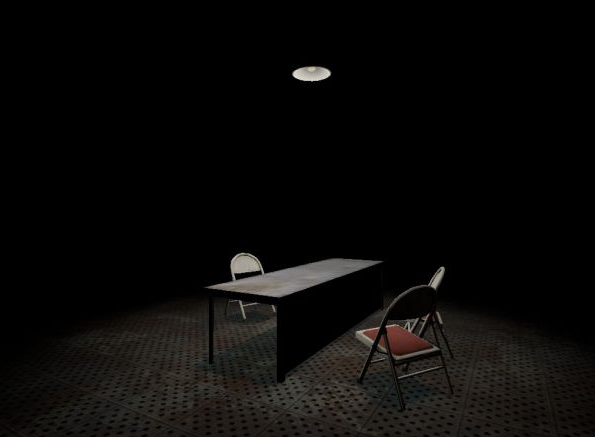 As he did, the light came on. The source was a single light bulb dangling from the ceiling just above his seat. A tall figure walked towards the seated Terry from across the room and sat at the table, staring directly at John.