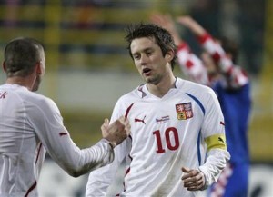Midfielders:Ai??Tomas Hubschman (Shakhtar Donetsk), Petr Jiracek (Wolfsburg), Daniel Kolar (Viktoria Plzen), Milan Petrzela (Viktoria Plzen), Vaclav Pilar (Viktoria Plzen), Jaroslav Plasil (Bordeaux), Jan Rezek (Anorthosis Famagusta), Tomas Rosicky (Arsenal).