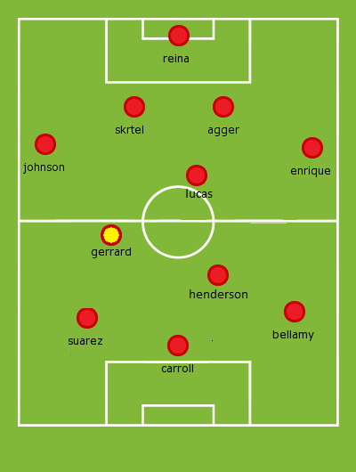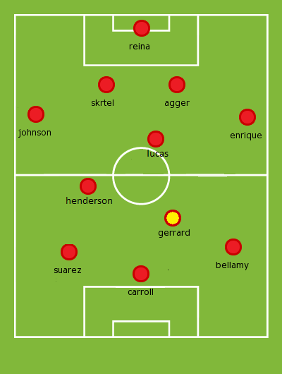 Dirk Kuyt and Jordan Henderson have been largely ineffective in the previous season when employed on the right and Gerrard would definitely be a more potent attacking option in comparison. Playing as a right forward would allow Gerrard to deliver quality balls in for Carroll to attack and he would not need to be as positionally disciplined as when playing at the center of the park.