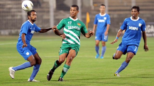 Dempo Sports Club regained the top of the table spot after round nine matches as they got the better of arch rivals Salgaocar in the derby on Saturday. Clubai??i??s recent troubles with AIFF did not incept any performance barriers for the Armando Colaco mentored side as they edged past Salgaocar. Former Arsenal striker Rohan Ricketts netted the opener for the Panjim based club, as he latched onto the defensive error from Randeep Singh and gave hosts the lead at the half hour mark. Salgaocar came back with a robust plan toAi??equalize and increased the pressure on the defending champions.