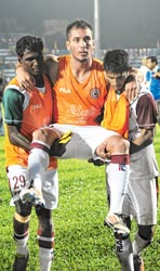 Carlos Hernandez, the Costa Rican World Cupper of Prayag United must have been unpleasantly surprised by the condition of the Jamshedpur turf. The field was muddy, tufts of grasses were coming out and it was completely uneven. There were also some puddles in the ground, some visible others covered by a layer of rain water. A Bengali daily described this field as a ai???death trapai???. Prayag United officials were so enraged with the ground conditions and sent a protest letter to AIFF as well. Needless to say nothing changed. All matches in the venue went on as scheduled on a field which could have injured players anytime.