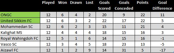Another debutant, Kalighat MS can also leave the field with their heads held high. Despite losing their first match to ONGC, Kalighat proved to be an extremely gritty customer as they ground out draws against local favourites United Sikkim and Mohammedan. They won against Aizawl FC as well as Royal. A win in their last match against Vasco ensured a 4th place for Kalighat.Ai??With reports suggesting that Kalighat MS are looking to set up their own academy, future certainly looks bright for the club.