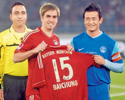 The match was however special for Baichung Bhutia who played his last match in the national team colors. This was the perfect ending for Bhutia who was largely restricted to the bench at the AFC cup owing to an injury. Bhutia was presented with a Bayern jersey by Philip Lahm just before the match as the Sikkimese SniperAi??bid adieu to the game. SpectatorsAi??chanted his name as he wasAi??substitutedAi??late into the game. theAi??Bayern visit to the nation is likely to pave way for more such exhibtion games in future.