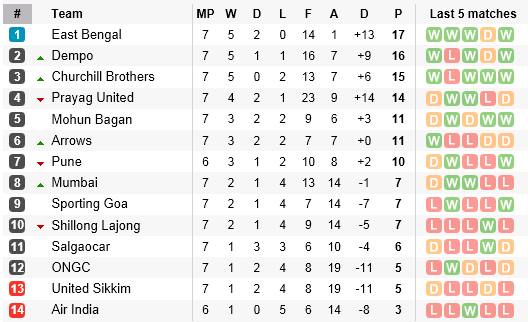 League Leaders East-Bengal continued their fine form with a 5-0 rout of ONGC. Chidi Edeh opened the scoring for the Red and Golden brigade in the 26th minute after anAi??assistAi??from Ishfaq Ahmed while Penn Orji scored the second. Manandeep scored another spectacular goal just like he had done in the last round while substitutes Ralte and Robin Singh scored the last two goals. East-Bengal have settled in nicely and have not conceded a goal in the last three games. With the signing of an Aussie striker expected East-Bengal will become even stronger.