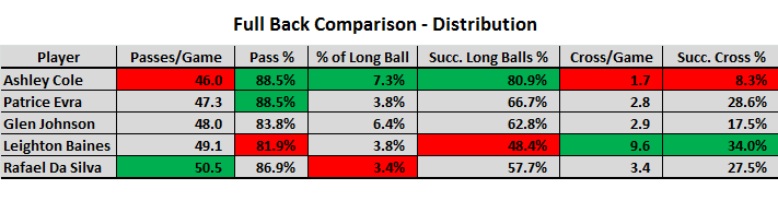 In the build-up phase, Johnson looks to stay wide and stretch the game to open up gaps in the opposition. The full back also acts as a useful option whenever things get too congested in the centre of the park.Ai??Johnson is actively involved in Liverpoolai??i??s patient passing approach and the defender averages 48 passes per game. Of this 6.4% of passes were hit long with a 62.8% accuracy. Johnson averages 2.9 crosses per game with 17.5% accuracy. But these low figures are understandable given Liverpool donai??i??t have a target man in the box. When compared with other top full backs in the league, Johnsonai??i??s statistics are very impressive.