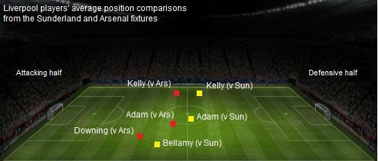 With the exception of Bellamy, the front six were the same that put in a commendable performance against Arsenal at Anfield. However, the dynamics of an away game are very different, especially without a natural winger to rely on. The below figure shows that there was a vast difference between Liverpool’s play in a home match against a superior opponent in comparison to an away match against a lesser opponent, even though the formation was similar and even though Dalglish had claimed there isn’t any difference in Liverpool’s home and away mentality.