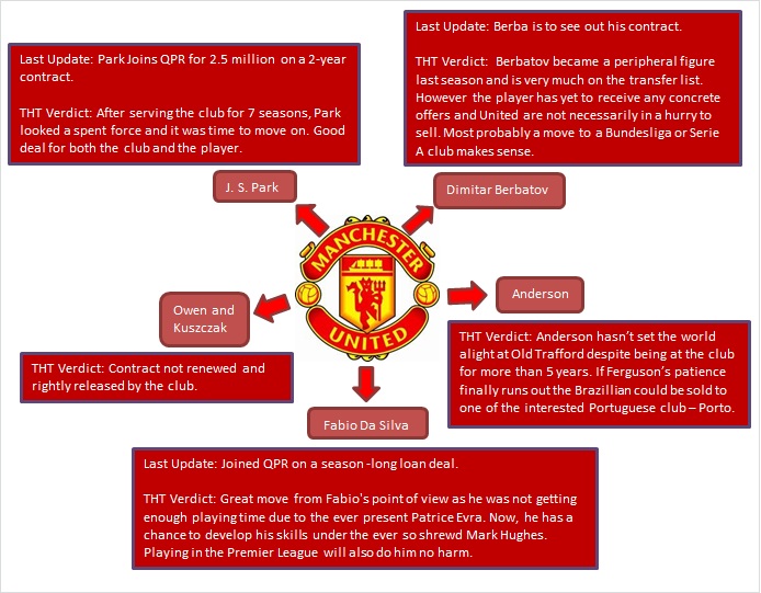 Owen and Kuszczak have already been released by the club, while the industrious Park-Ji-Sung has been sold to QPR. However, there are few others that were not upto the mark last season and hence could be shown the door at Old Trafford.