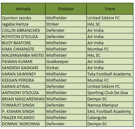 Rocus Lamare inked a new deal with the Vasco based club as many clubs wanted to his signatures on their contract. Along with India international Lamare, Agustin, Francis Fernandes, Gilbert Oliveira, Milagres Gonsalves, Anthony Barbosa, and Clifton Dias have been retained by the club. In addition to this, the former champions managed to entice highly rated Namibian midfielder Quinton Jacobs from United Sikkim. The Mumbai lad Keegan Perreira also switched loyalties to Goa as he was inducted in the mid field list.