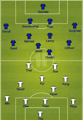 Expected starting line-up(4-4-1-1): Subrata (GK). Denzil, Gourmangi, Raju, Gurjinder, Syed Rahim, Lenny, Mehtab, Clifford, Jewel, Chettri( C ).