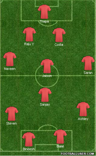 Facing the table toppers andAi??a side in form, custodian Lalit Thapa had his work cut out. Saran Singh and Naveen Kumar were the centre backs withAi??Raju Y on the taking over the overlapping role. Bineesh Balan shared the striking responsibility alongside Balal with young prdigy Jaison Vales leading the side from the middle of the park. Steven Dias took his usual position on the right wing with Ashley Fernandes and Richard Costa deployed in the middle.