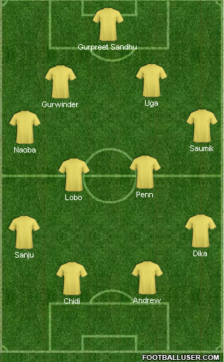 East Bengal went in with their usual 4-4-2 formation with Gurpreet Singh Sandhu making a comebackAi??in the AFC Cup under the bars. Naoba and club captain Sanju Pradhan treaded the right flank with ever reliable Soumik and India internation Dika Ralte on the left. Cavin Lobo made a rare start in the competition since his transfer from Mumbai FC in the summer. He alongside Penn Orji was cited to string and orchestrate moves from the center. Normal suspects Chidi Edeh and Borisic spearheaded the attack. Harmanjot Singh Khabra missed out due to his leg injury which will keep the Punjabi lad out for atleast six weeks. Mehtab Hossain was not part of the squad and was rested ahead of their crucial I-league matches.