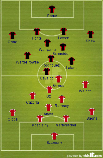 Possible Starting Lineup [4-2-3-1]: Szczesny (GK), Sagna (RB), Mertesacker (RCB), Koscielny (LCB), Gibbs (LB), Arteta (CM), Ramsey (CM), Cazorla (LAM), Ozil (CAM), Walcott (RW), Giroud (CF)