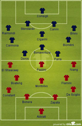 Probable Starting Lineup [4-3-3]: Abbiati; De Sciglio, Zapata, Bonera, Constant; Flamini, Montolivo, Boateng; Niang, Pazzini, El Shaarawy