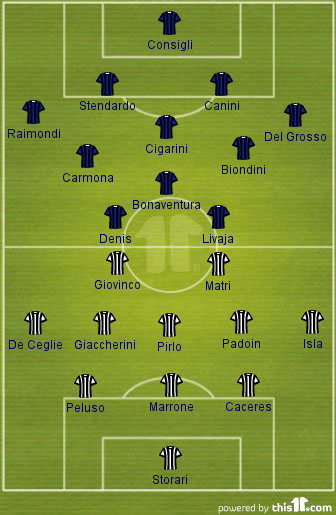 Probable Starting Line-up (3-5-2): Storari; Caceres, Marrone, Peluso; Isla, Padoin, Pirlo, Giaccherini, De Ceglie; Matri, Giovinco