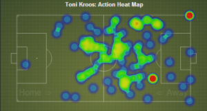 Using a 4-2-3-1 Bayern Munich have lined-up with Mandzukic up front and the attacking trio of Kroos, Ribery and Muller in rigid set-up but during the 90 minutes on the pitch, this quartet can be at the least described as brilliantly fluid. The telepathic understanding with one another and the willingness to drop back to help out the defense has made this offensive four one of the best in Europe. The talents of Franck Ribery and Thomas MA?ller have never been in doubt, but this season will be most remembered for the rise of Mario Mandzukic as a lethal front-man and the coming of age of young Toni Kroos . Kroos who made his name at Leverkusen as a wide player, has been employed in the number 10 role as the principle playmaker in the side behind the lone striker upfront. The German international has made 31 appearances this season scoring 9 goals and assisting 8. More importantly he has become an important cog in the Bayern Munich engine room thanks to his abilities in propagating attacks with his vision and passing and holding up the ball in build-ups.