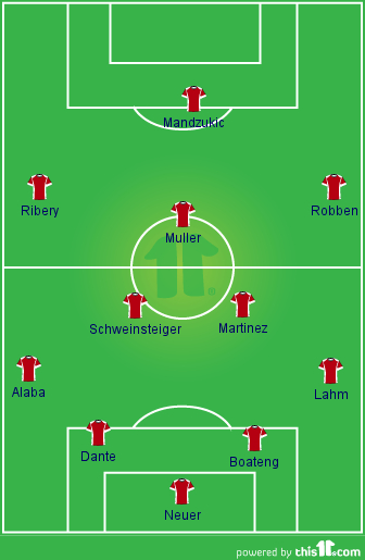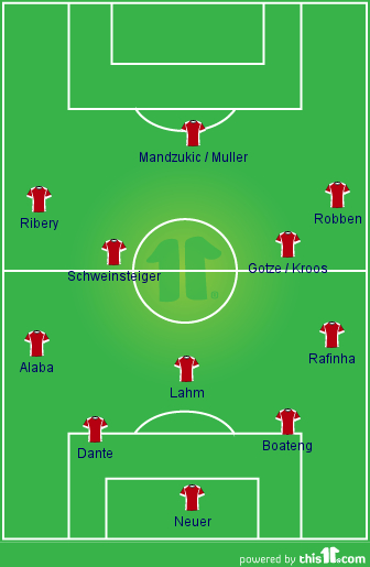 To put it in a nut shell, much of Guardiolaai??i??s set-up of 4-1-4-1 is centered on how his pivot and his retreating midfielder position themselves during the sideai??i??s offense and defense. His box to box midfielder has the dual responsibility of aiding the attack as well as keeping track of the opposition attacking midfielder while the pivot has the crucial role of patrolling the defensive half of his side.Ai?? Hence player selection for the two roles becomes important for Guardiola’s system to perform efficiently. Skipper Lahm and Javi Martinez fit the job descriptions to slot into the pivot role. Martinez may not have the pace of Lahm but does have a good positional sense and reading of the game to play the role. The role of the retreating midfielder is tailor made for Schweinsteiger but Guardiola has to ensure the player knows the responsibility of the role. Thiago Alcantara might have been brought in to fill this role as well while Gotze/Muller/Kroos assume the attacking midfield position.