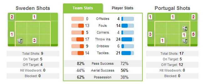 Portugal started the match brightly and Bruno Alves was close to providing an early lead with an header from a free-kick only for Isaksson to pull out a wonderful save. Sweden showed greater intensity in this game than they managed to display in the first leg and dominated possession. But it was Portugal who created most of the chances and looked likelier of the two to score. Ronaldo gave few warning signs to the Swedish defence in the first half, where they allowed him time and space to shoot, and eventually in the second half he made them pay.