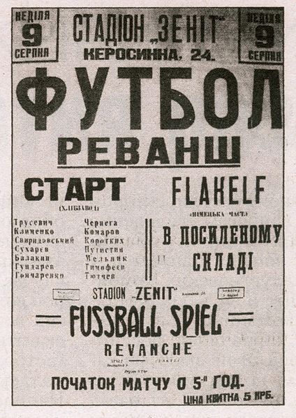 With their plan being foiled, the Nazis decided to challenge Start to one more game by fielding a fresh side they called ai???Flakelfai???. The Germans were of the view that their new squad would easily push aside this fatigued Start team and that they would be able to remind Ukraine and the city of Kyiv of their undying dominance.