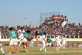 A local league game being played at the Lammual Stadium in Aizawl