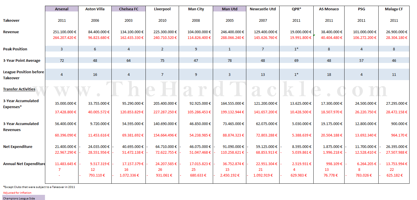 These are the clubs that have managed to qualify for the Champions League or maintained a place for Europeai??i??s most prestigious club competition after change of ownership. Except Arsenal and Manchester United and to a lesser extent Malaga, the rest has spent obscene amounts of money to accomplish that. However, one has to consider the circumstances on a case by case basis.