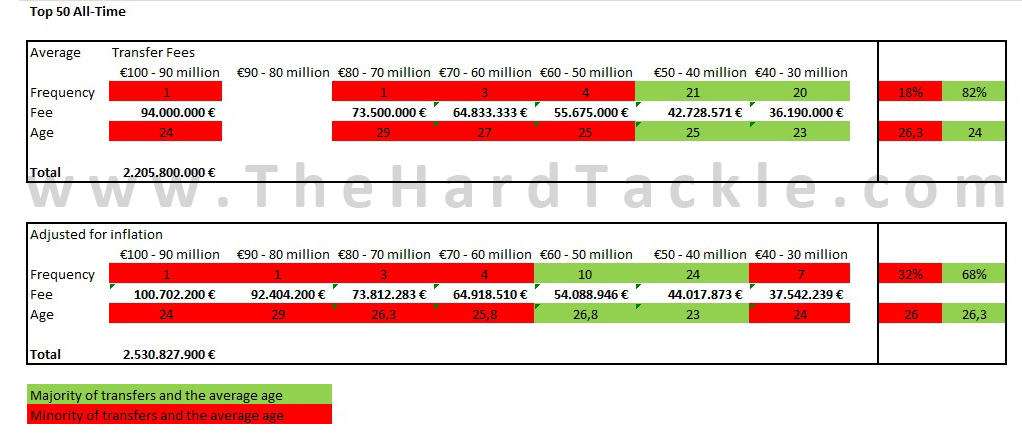 Adjusted for inflation the top 10 of most expensive transfers would look like this.