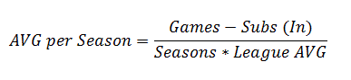 The AVG per Season record itself is rather simple formula to calculate the percentage of games any player couldai??i??ve played over x-amount of seasons. Itai??i??s a variable, not an absolute.