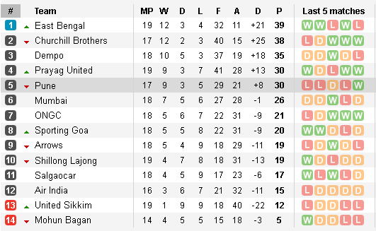 Saturday evening saw Pune FC gear up for Salgaocar challenge. Derrick Pereiraai??i??s side has lost its way from last couple of rounds and this round was no exception too as they were humbled at home by a Salgaocar side, which didnai??i??t need a second invitation to attack a side which was struggling and nervous. The scrappy affair saw Salgaocar arriving to the party early and quickly making the most of it. Striker Francis Fernandes scored a brace within the first half to virtually seal all three points for the Vasco side. Vital win takes the goan side to eleventh in the table with four wins now and safely away from relegation zone.