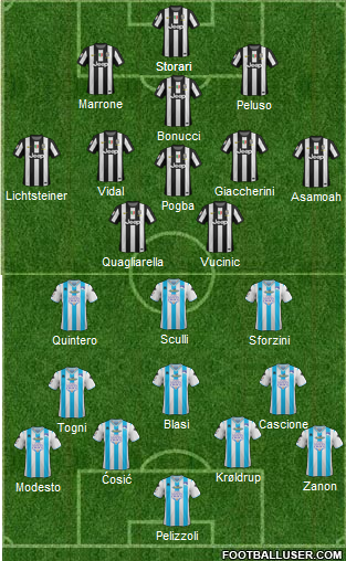 Possible Starting XI (3-5-2):Ai??Storari; Marrone, Bonucci, Peluso; Lichsteiner, Vidal, Pogba, Giaccherini, Asamoah; Vucinic, Quagliarella