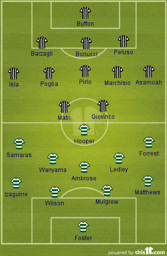 Up front, Conte could deploy the duo of Giovinco and Matri. The latter was excellent in the first leg as he scored one and played his part in another while Giovinco has done well in recent weeks and his energy and acceleration can cause a few problems to Celticai??i??s defense.