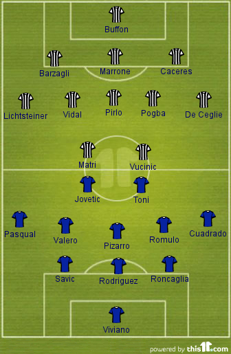 Probable Starting Line-up (3-5-2): Buffon; Barzagli, Marrone, Caceres; Lichtsteiner, Vidal, Pirlo, Pogba, De Ceglie; Vucinic, Matri
