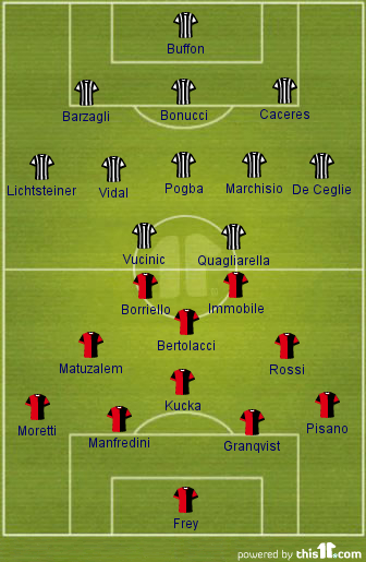 Probable Starting Line-up (3-5-2): Buffon; Barzagli, Bonucci, Caceres; Lichtsteiner, Vidal, Pogba, Marchisio, De Ceglie; Quagliarella, Vucinic
