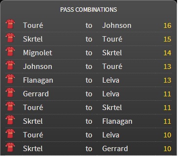 It becomes apparent how pivotal Coutinho is to Liverpool’s game upon looking at this data. It is also heartening to see Joe Allen‘s name recurring in there, as his ability to conduct metronome like passing at the center of the pitch was one of the main reasons for Rodgers bringing him to Liverpool. But no matter what the Barcelona tiki-taka fanboys might be telling you, football is about more than just passing. And what better way to justify this than to use the example of the living embodiment of complete block-buster footballing brilliance that is Steven Gerrard, the captain of Liverpool Football Club.