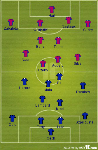 Ramires may be used on the right wing in this game to counter the treat posed by City’s attacking players, especially Silva and to keep Clichy in his own half. A lot will also depend on whether Mikel and Lampard are able wrest the midfield control from Toure and Barry/Garcia.