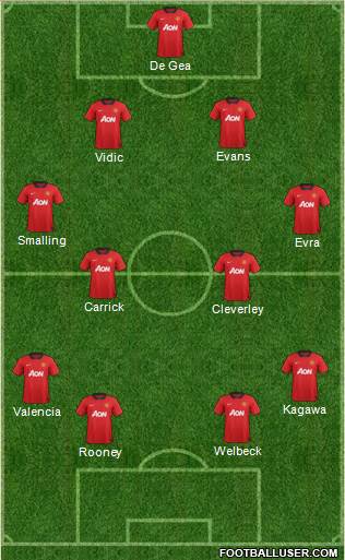 Probable Starting Lineup [4-4-2]: De Gea; Smalling, Vidic, Evans, Evra; Valencia, Carrick, Cleverley, Kagawa; Rooney, Welbeck