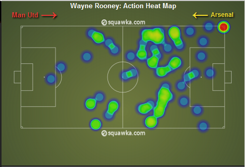 The heat map above clearly depicts the level of his involvement in the game. He was practically running all over Arsenal’s half and still spent a significant amount of time in his own half as well helping out defensively. For all the pre-season moaning, this Wayne Rooney is a player every manager would love to have. He is diligent in defense, destructive in attack and goes about his business with a doggedness as he vies for the ball every single time.