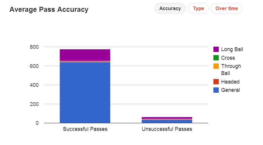 Like Andrea Pirlo, Paul Scholes uses both long range and short range passing. Passing data from Squawka