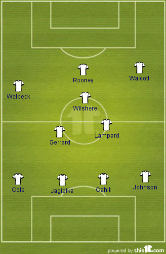 Formation with Wilshere, Lampard, and Gerrard that leaves the England back line with little cover, and whatever little being rather inadequate